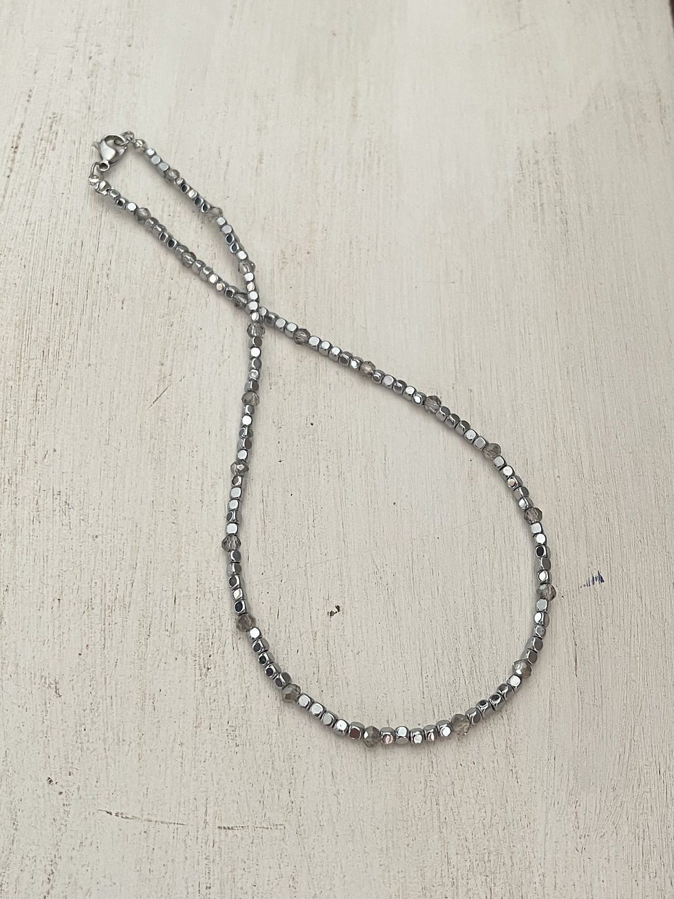 Collar en cristal checo con detalles de hematite y separador en baño de oro